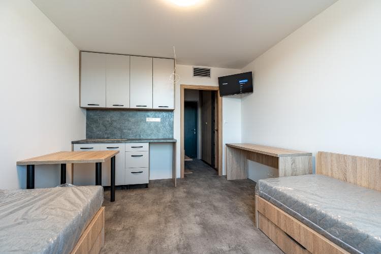Ponúkame na prenájom 26 úplne novo-dokončených a zariadených apartmánov v unikátnom projekte Apartmánového komplexu na ulici Kavečianská cesta v Mestskej časti Košice - Sever, v tesnej blízkosti (iba 100 m, 3 min. pešou chôdzou) od Univerzity veterinárneho lekárstva a farmácie v Košiciach. Ide o lokalitu s výbornou občianskou vybavenosťou a dobrou dostupnosťou do centra mesta. Apartmány ponúkajú nadštandardné bývanie s príjemnou atmosférou a sú vhodné pre jednu alebo dve osoby. Úžitková plocha apartmánu je 22 m2. Orientácia na Západ. Každý apartmán je kompletne zariadený: priestranný šatník, samostatná kúpeľňa so sprchovacím kútom a WC, kuchynským kútom, dvoma oddelenými posteľami a pracovným stolom pre 2 osoby. Apartmánový komplex ponúka priamo v objekte pre svojich nájomcov vlastnú kaviareň, práčovňu a požičovňu skútrov. Cena prenájmu pri obsadenosti apartmánu dvoma osobami je 790 eur/mesiac vrátane energií a internetu. Cena prenájmu pri obsadenosti apartmánu jednou osobou je 650 eur/mesiac vrátane energií a internetu. Možnosť prenájmu apartmánu je od 15.8.2025 minimálne na 12 mesiacov. Depozit: 800 eur KONTAKT: +421910483770 KONTAKTNÁ OSOBA: Ing. Peter Čulen E-mail: biquarters.ke@gmail.com link na video: https://youtube.com/watch?v=OEq5zvVHW0o&si=p8zqekmk6TJ-iLVz Aktuálnu ponuku všetkých našich nehnuteľností nájdete na stránke spoločnosti Orion Real s.r.o. TEXT in ENGLISH: We are offering for rent 26 completely newly refurbished and furnished apartments in a unique Apartment Complex project located on Kavečianska cesta in Košice, just 100 meters (a 3-minute walking distance ) from the University of Veterinary Medicine and Pharmacy in Košice. The location offers excellent amenities and good access to the city center of Košice. The apartments provide high-standard living with a pleasant atmosphere and are suitable for one or two persons. The usable area of the apartment is 22 m2. Orientation to the West. Each apartment is fully furnished and equipped with a spacious wardrobe, a separate bathroom with shower and toilet, a kitchenette, two separate beds, and a work desk for two people. There is a porch in front of each apartment. The apartment complex includes an on-site café, laundry and scooter rental service for its tenants. The rental price for an apartment occupied by two people is 790 euros/month, including utilities and internet. The rental price for an apartment occupied by one person is 650 euros/month, including utilities and internet. Apartments are available from August 15, 2025, with a minimum rental period of 12 months. Security deposit: €800. KONTAKT: +421910483770 CONTACT PERSON: Ing. Peter Čulen E-mail: biquarters.ke@gmail.com link na video: https://youtube.com/watch?v=OEq5zvVHW0o&si=p8zqekmk6TJ-iLVz