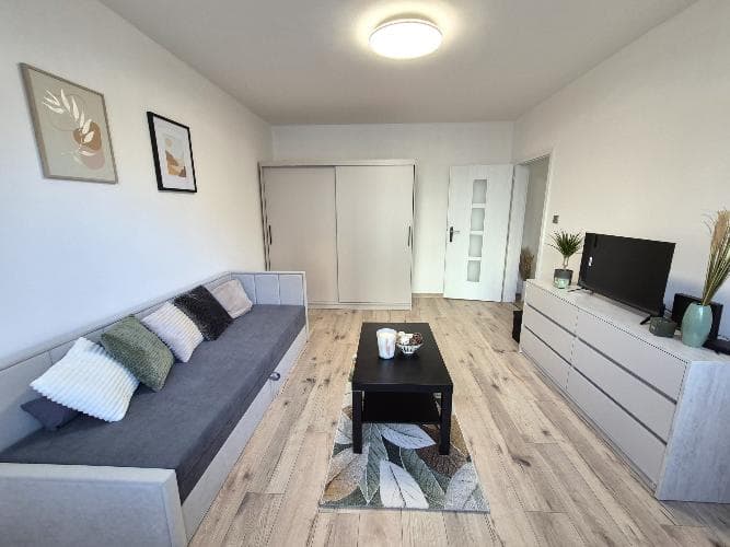 Štýlový 1-izbový byt na prenájom s rozlohou 35 m² sa nachádza vo veľmi dobrej lokalite na Bernolákovej 11, Košice, Terasa II. Byt sa nachádza na prízemí, prešiel kompletnou rekonštrukciou koncom roka 2025 a je kompletne zariadený. Lokalita: V blízkosti Univerzitnej nemocnice (15 min. pešo), Galérie (10 min. pešo),potravín a dobrej dostupnosti verejnej dopravy. Ponúka útulnú obývaciu izbu s veľkou priestrannou skriňou, komodou, konferenčným stolíkom a rozkladacou pohovkou, ktorú môžete jednoducho premeniť na manželskú posteľ. Posteľ má aj samostatný úložný priestor na paplón a vankúš. Moderná kuchyňa s chladničkou. Súčasťou kuchyne je aj vybavenie: šálky,riad,hrnce, príbor, rýchlovarná kanvica. Jedálensky stôl a stoličky budú taktiež súčasťou kuchyne. K bytu patrí kúpeľňa so sprchovým kútom + pračka. Domáce zvieratká, žiaľ, nie sú povolené. Nefajčiar. Dostupnosť: Ihneď Mesačný nájom: 650 eur (vrátane nájmu, energií, Telekom TV a optického internetu) Depozit: 1. mesačný nájom 650 eur Kontaktovať sms , ďakujem. Stylish 1-room apartment for rent with an area of 35 m² is located in a very good location at Bernolákova 11, Košice, Terasa II. The apartment is located on the ground floor, underwent a complete reconstruction at the end of 2025 and is fully furnished. Location: Near the University Hospital (15 min. walk), Gallery (10 min. walk), groceries and good access to public transport. It offers a cozy living room with a large spacious wardrobe, chest of drawers, coffee table and sofa bed, which you can easily convert into a double bed. The bed also has a separate storage space for a duvet and pillow. Modern kitchen with refrigerator. The kitchen also includes equipment: cups, dishes, pots, cutlery, kettle. Dining table and chairs will also be part of the kitchen The apartment includes a bathroom with shower + washing machine. Unfortunately, pets are not allowed. Non-smoker. Availability: Immediately Monthly rent: 650 euros (including rent, utilities, Telekom TV and fiber optic internet) Deposit: 1st month's rent 650 euros Contact by sms , thank you.