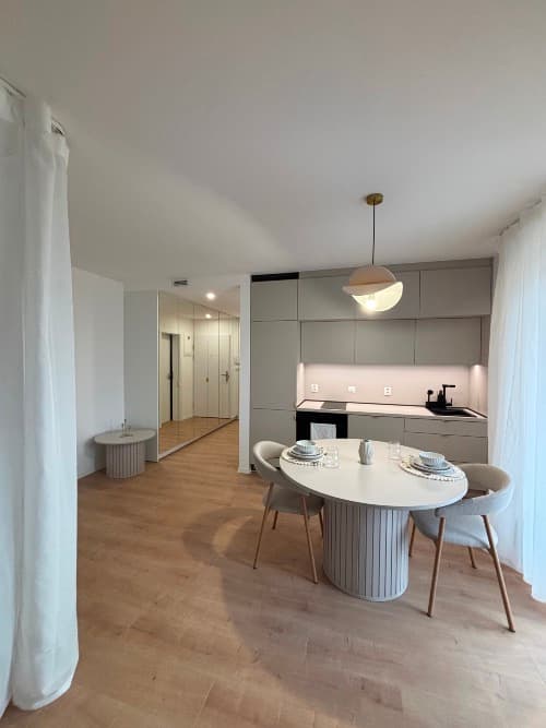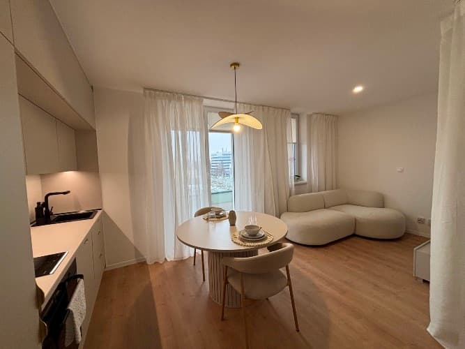 Ponúkam na prenájom úplne nový, moderný a ešte nikým neobývaný 1-izbový byt v lokalite Kubániho dvory v centre Zvolena. Byt je kompletne zariadený novým nábytkom a kvalitnými spotrebičmi. ⸻ 🛋 Dispozícia a vybavenie bytu • výmera 38 m² + 8 m² balkón • priestranná izba s kuchynským kútom • kompletne zariadený byt – vid foto • spotrebiče: • práčka • sušička • umývačka riadu • indukčná varná doska • teplovzdušná rúra • (chladnička s mrazničkou, TV, nábytok) • kúpeľňa so sprchovým kútom, WC • priestranný balkón • všetko úplne nové a ešte neobývané ⸻ 🏢 Bytový dom • moderná novostavba • výťah • pivnica • kvalitné spoločné priestory ⸻ 🚗 Parkovanie • vyhradené vonkajšie parkovacie miesto ⸻ 📍 Lokalita – CENTRUM • priamo v centre Zvolena • minúta pešo na Námestie SNP • obchody, kaviarne, úrady, MHD v pešej dostupnosti ⸻ 💶 Cena • 550 € / mesiac (vrátane energií) • + 50 € parkovanie • = 600 € spolu • Depozit: 2 mesačne nájomné ⸻ 📌 Podmienky • vhodné pre 1 osobu alebo pár • domáce zvieratá: nie • nefajčiarsky byt • dlhodobý prenájom preferovaný