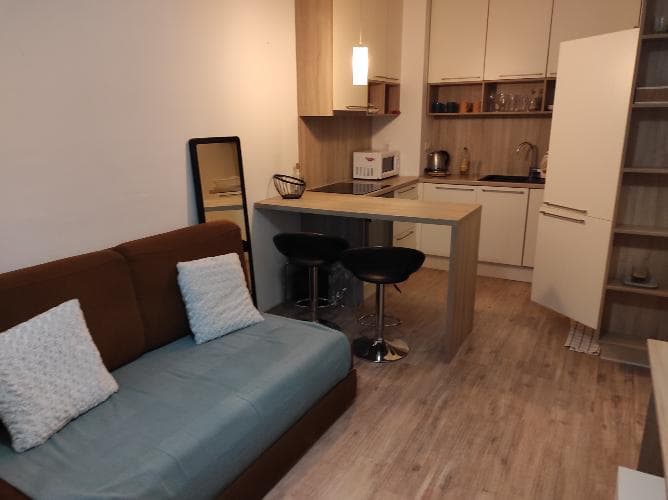Ponúkam do prenájmu 2i byt - apartmán na 3. podlaží, otočený je do ulice, s balkónom +2 m2, vo výbornej lokalite - Nivy. Voľný od 1.2.2026. Len pre nefajčiarov a bez domácich zvierat. Byt nie je vhodný pre malé deti. Dom sa nachádza na Prievozskej (bližšie k autobusovej stanici Mlynské nivy) na rohu ulíc Prievozská/Plynárenská. Lokalita pri BBC1 Apollo Business Center, neďaleko ING, IBM, Twin City. Priamo pred domom je zástavka MHD Miletičova. Byt má 1 samostatnú izbu. Druhá izba je spojená s kuchyňou. Je kompletne zariadený: 2 postele, úložný priestor v 2 vstavaných skriniach, 2x stôl, stoličky, sedačka, vstavané elektrospotrebiče vrátane umývačky, kuchynské vybavenie, pračka. Cena pre 1 osobu je 600 Eur nájom vrátane internetu + 150 Eur náklady, každá ďalšia osoba navyše 20 eur. Možnosť dohody vlastného parkovacieho státia za extra poplatok, no nie je podmienkou. Platí sa vratná zábezpeka vo výške 900 eur. Kontakt 0911810620 alebo andrea123ku@gmail.com