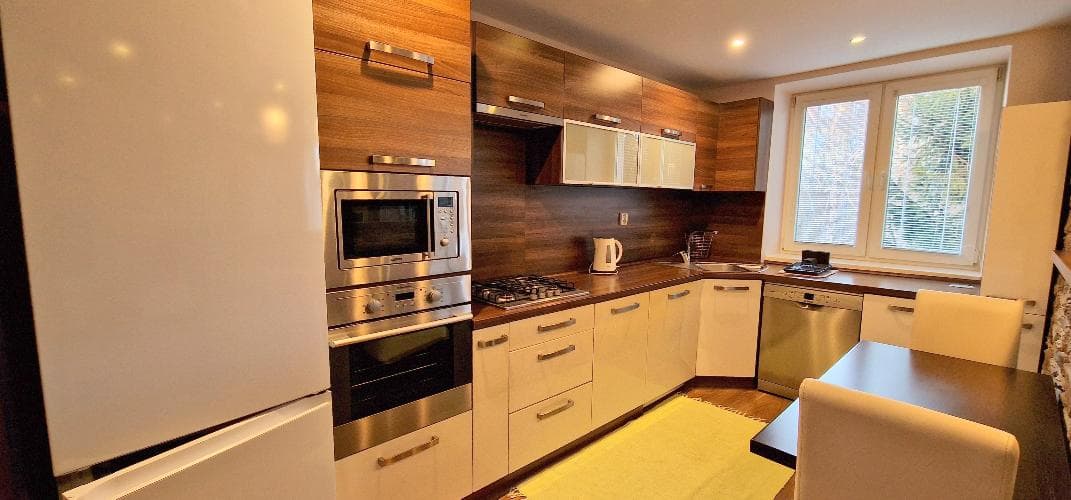 Ponúkam na prenájom štýlový a kompletne zariadený 2-izbový byt na Zimnej ulici v Košiciach, na 2. poschodí zatepleného bytového domu s novým výťahom. Byt má výmeru 55 m², je orientovaný na západ a vďaka orientácii do tichého dvora bez áut ponúka absolútny pokoj. Dispozícia bytu: vstupná chodba samostatné WC kúpeľňa s vaňou spálňa s pracovným kútom kuchyňa prepojená s obývacou izbou balkón so vstupom z obývacej izby Vybavenie: Byt sa prenajíma kompletne zariadený nábytkom aj spotrebičmi. TV, chladnička s mrazničkou, práčka a sedacia súprava sú úplne nové. Ostatné zariadenie je síce používané, no vo výbornom stave, bez viditeľných známok opotrebenia - pôsobí ako nové. Kuchyňa je vybavená: umývačkou riadu plynovým sporákom elektrickou rúrou mikrovlnnou rúrou Bytový dom a lokalita: zateplený bytový dom nový výťah len pár bytov - veľmi tiché bývanie potraviny len pár krokov od vchodu električka aj autobus pár metrov parkovanie priamo pred domom cez abonentnú kartu nájomca Podmienky prenájmu: nájomné: 750 € / mesiac vrátane energií Depozit 1000 vhodný pre 1 pracujúcu osobu alebo pár bez zvierat, nefajčiar, bez malých detí minimálna doba nájmu: 1 rok byt je moderný, zrekonštruovaný a veľmi pekný 📞 V prípade záujmu ma neváhajte kontaktovať - byt je voľný a pripravený na nasťahovanie od 20.6.2026.