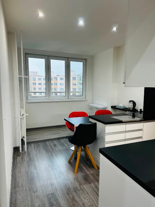 Prenájom 3-izbového zrekonštruovaného bytu – Košice KVP, Klimkovičova Ponúkam na dlhodobý prenájom priestranný 3-izbový byt v obľúbenej lokalite Košice – sídlisko KVP, ulica Klimkovičova. Byt sa nachádza v zrekonštruovanom bytovom dome, je kompletne zariadený a pripravený na nasťahovanie ihneď. Dispozícia a vybavenie: • 3 samostatné izby + kuchyňa + špajza • Obývačka: gauč, skrine, komoda • Spálňa: manželská posteľ, skriňa • Detská izba: posteľ, skriňa • Kuchyňa: indukčná varná doska, rúra, mikrovlnka, chladnička, všetky potrebné spotrebiče • Kúpeľňa: práčka • Chodba: veľká skriňa • Byt je svetlý, čistý, po rekonštrukcii, s dobrou dispozíciou a množstvom úložného priestoru Lokalita: Tichá a žiadaná časť sídliska KVP, výborná občianska vybavenosť – obchody, MHD, školy, škôlky, parkovanie priamo pred domom. V blízkosti sa nachádza lesopark a množstvo zelene. Cena: • 890 € / mesiac s energiami • V cene nie je zahrnutý ANTIK TV a internet • Depozit: podľa dohody • Byt je voľný ihneď