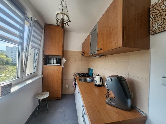 Bc. Alena KIMLEROVÁ v spolupráci s realitnou kanceláriou ELI REAL Vám ponúka na prenájom slnečný 3 izbový byt v Košiciach, na sídlisku Dargovských hrdinov - Krosnianska ulica. Ponúkaný byt sa nachádza na 7/8 poschodí v panelovom bytovom dome s novým výťahom a slušnými susedmi. V okolí bytového domu sa nachádza kompletná občianska vybavenosť - základná škola, materská škola, obchody, poliklinika, zastávka MHD. Jedná sa o 3 izbový, slnečný a zrekonštruovaný byt s rozlohou 68 m2. Dispozične pozostáva zo vstupnej chodby, samostatnej toalety a samostatnej kúpeľne s vaňou, vybavenej kuchyne, obývacej izby s jedálenským kútom a výstupom na loggiu a ďalších dvoch samostatných a nepriechodných spální. Byt sa prenajíma čiastočne zariadený a kompletne vybavený spotrebičmi. Platobné podmienky: - mesačné nájomné vrátane zálohových platieb za energie - 800 EUR/m (2 osoby) - vratný depozit - 1000 EUR - pri podpise rezervačnej dohody jednorazový rezervačný poplatok pre RK - 400 EUR Byt je vhodný pre 2 až 3 dospelé pracujúce osoby, prípadne študentov VŠ, nefajčiarov bez zvierat. Prenajímateľ si vyhradzuje právo výberu vhodného nájomníka. Nehnuteľnosť je k dispozícii ihneď. V prípade ak Vás naša ponuka zaujala, neváhajte nás kedykoľvek kontaktovať, veľmi radi si s Vami dohodneme osobnú obhliadku ponúkanej nehnuteľnosti. Bc. Alena KIMLEROVÁ 0911 034 189 kimlerova@elireal.sk