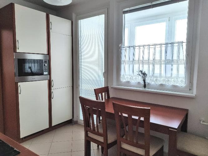 Prenájom 3 izbový byt, začiatok Petržalky, ihneď voľný Ponúkam na prenájom zariadený 3 izbový byt s klimatizáciou na Mlynarovičovej ulici na začiatku Petržalky, výmera 70 m2 s pivnicou + zasklenená loggia 5 m2. POPIS: Byt sa nachádza na 9 poschodí z 12 v bytovom dome s dvomi výťahmi. Obývačka a dve spálne sú nepriechodné, do samostatnej kuchyne je vstup z chodby alebo z obývačky, do jednej spálne je vstup z kuchyne a do druhej z chodby, kúpeľňa, WC je samostatné, VYBAVENIE BYTU: - obývačka: klimatizácia, sedačka, skrinky, router Slovanet. v prípade požiadavky bude doplnené TV, - kuchyňa: elektrická rúra, mikrovlnka, chladnička s mrazničkou, plynová varná platňa, stôl stoličky, - v jednej spálni je manželská posteľ, v druhej skriňa, komoda, v prípade požiadavky bude doplnená váľanda, - na chodbe je veľké množstvo úložných priestorov: veľká vstavaná skriňa, pri vstupe je šatník, botník. , takže v izbách už nie sú potrebné veľké skrine - v kúpeľni je vaňa so zástenou, umývadlo a práčka. LOKALITA: Bytový dom na Mlynarovičovej ulici v Petržalke je situovaný vo vyhľadávanej lokalite v blízkosti centra mesta 400 m od električkovej trate, autobusové zastávky MHD s napojením do celého mesta sú do 5 minút. V Petržalke nájdete kompletnú občiansku vybavenosť: trhovisko, obchody, školy, vysoká škola, služby, cyklotrasa, zimný štadión, jazero Draždiak. Lokalita ponúka rýchly prístup do centra mesta, na železničnú stanicu aj na diaľnicu. Byt je vhodný pre pár alebo pre rodinu s jedným alebo dvomi deťmi alebo pre priateľov. Nie fajčiari. CENA NÁJMU: je 630 € + 170 záloha za energie / 3 osoby. Pri podpise zmluvy sa hradí 1x mesačná platba 800,- eur, 1x vratný depozit 800,- eur a 1x provízia pre RK 400,- eur. Byt je k dispozícii ihneď. Poplatok za TV internet nie je v cene.